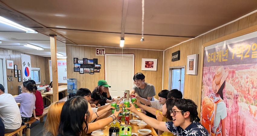 삼겹살 바베큐 파티, 김치찌개는 덤으로 준비 되어있습니다! 여행의 피로을 가벼운 맥주 한잔으로 풀어요. 숙면을 할수 있답니다~